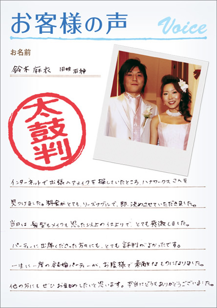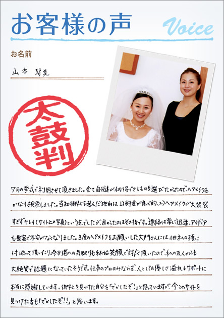 千葉県 嶋田様 ご夫妻 - いろいろなブライダルヘアメイクさんをまわり、ぎりぎりまで迷ってココに決めました!!